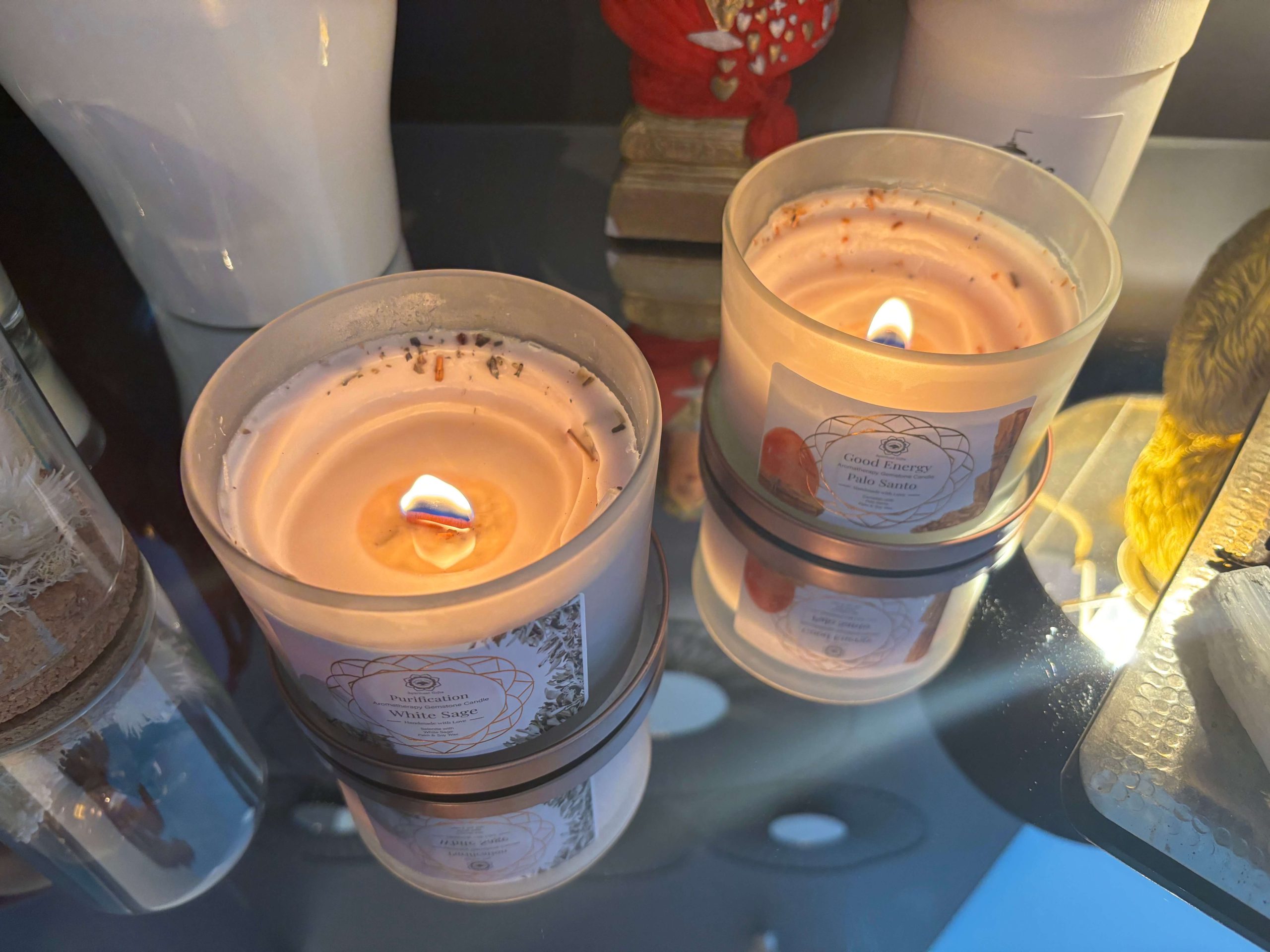 « Élevez votre ambiance avec nos Bougies ParfumĂ©es, oĂ¹ chaque lueur rĂ©vèle la magie des pierres prĂ©cieuses soigneusement sĂ©lectionnĂ©es Ă l’intĂ©rieur. Une expĂ©rience sensorielle envoĂ»tante qui marie l’arĂ´me captivant Ă l’Ă©nergie unique des gemmes, crĂ©ant une atmosphère parfumĂ©e empreinte de bien-Ăªtre et de mystère. »