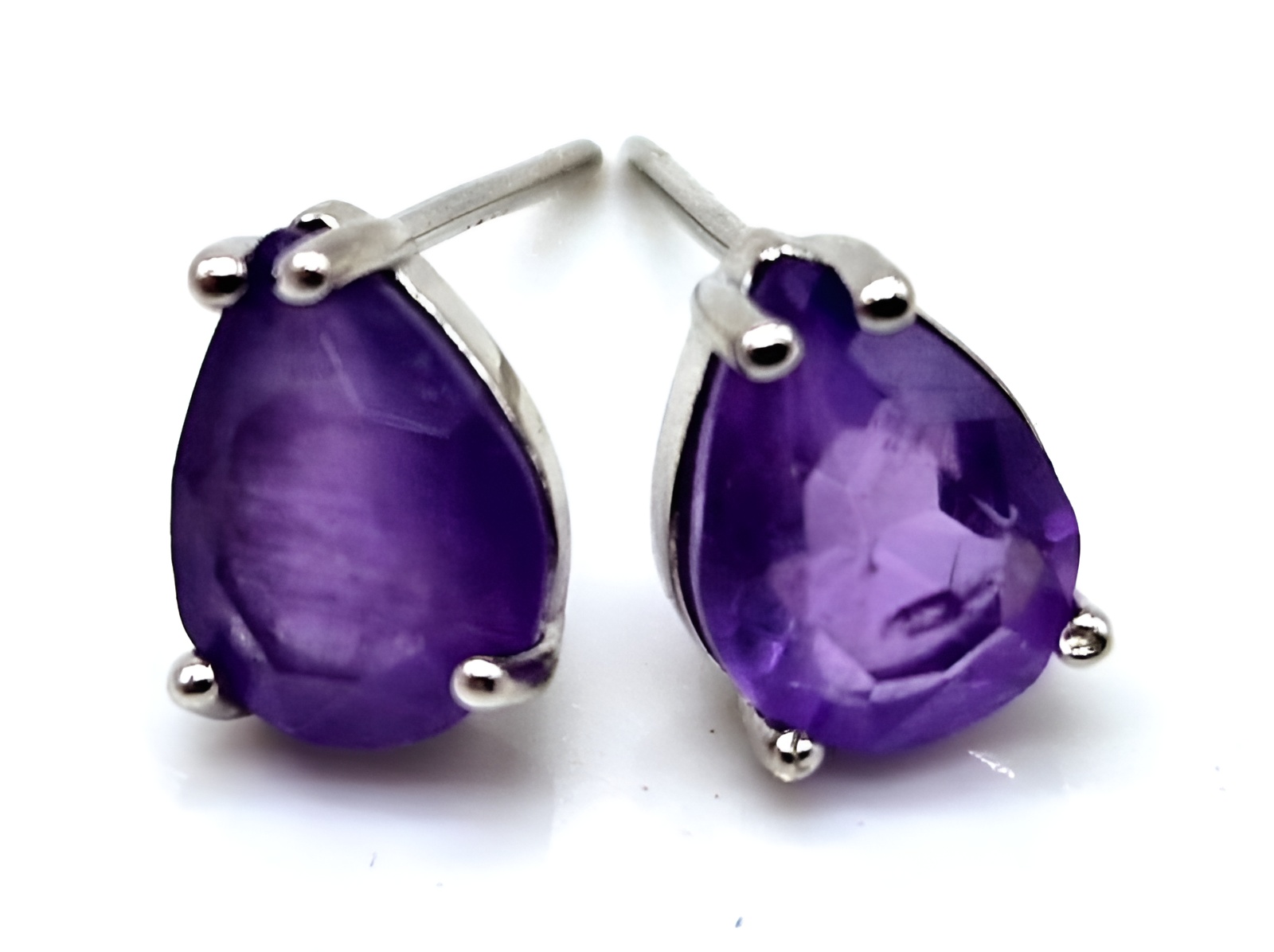 Boucles d Oreilles Larmes en argent 925 et Améthyste