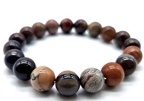 **Description du bracelet en pierres roulées rondes en Agate Fossile :**