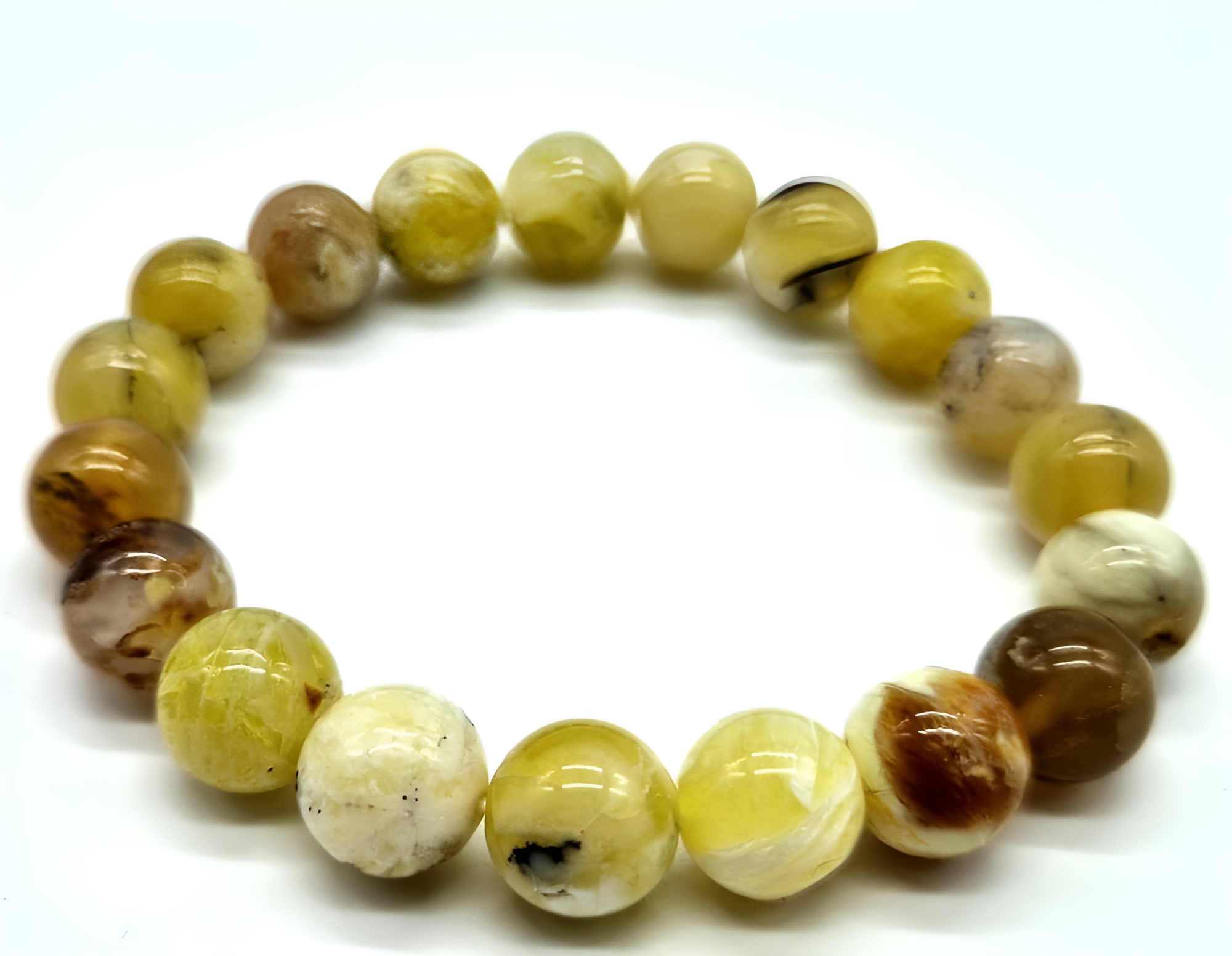 ANG&LINALe bracelet en pierres roulées rondes en Opale Jaune est une création éblouissante qui capte la beauté chatoyante de cette pierre précieuse. Composé de perles d'Opale Jaune soigneusement polies, chaque pierre révèle des éclats lumineux de jaune, évoquant la chaleur du soleil. Les perles, taillées en forme ronde et lisse, sont reliées entre elles par un fil délicat, formant un bracelet ajustable qui s'adapte gracieusement à votre poignet. La fermeture peut être assurée par un fermoir discret, ajoutant une touche de raffinement à cette pièce distinctive.