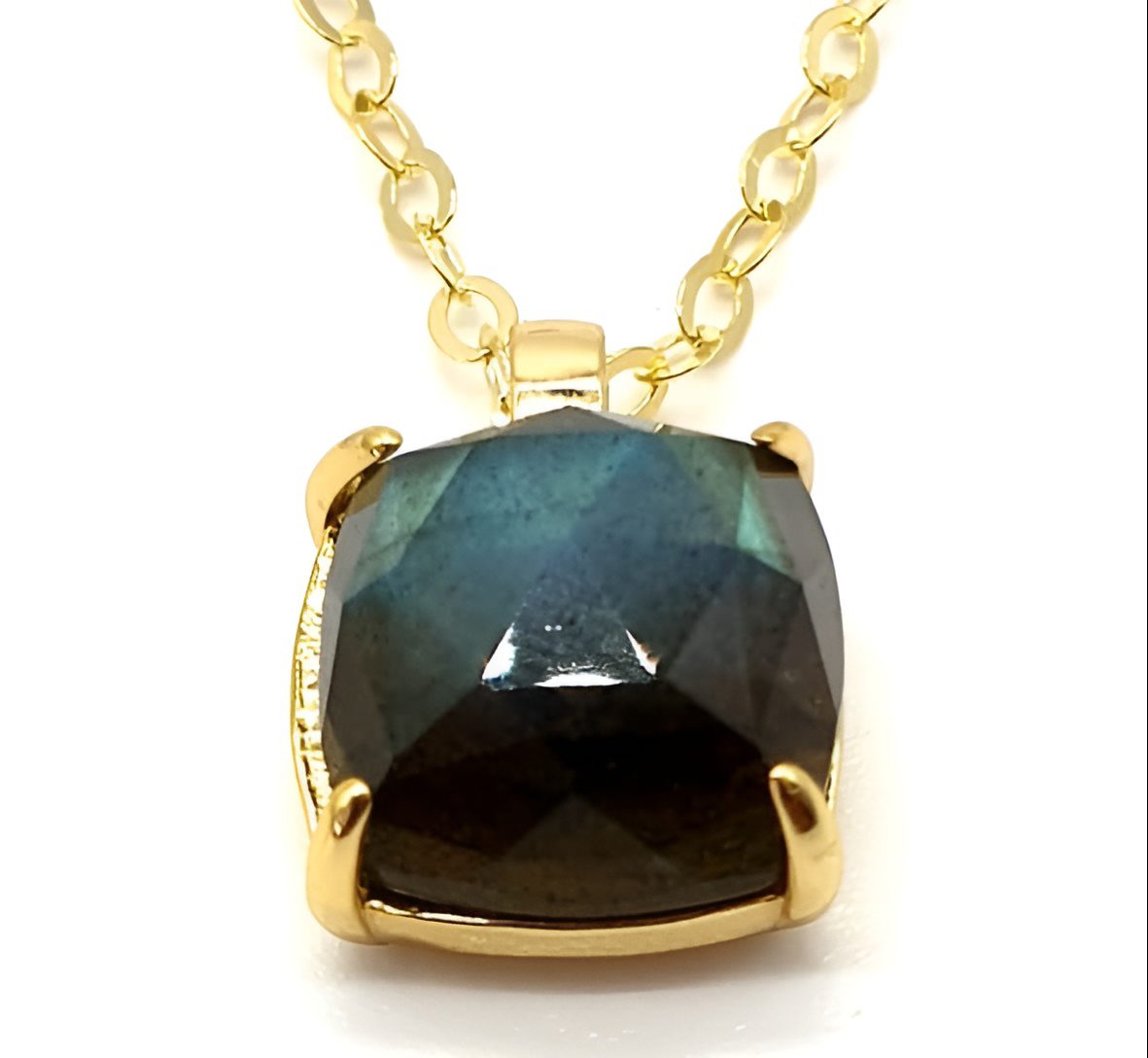 Collier Argent Plaqué Or et Labradorite Carrée de 10x10mm