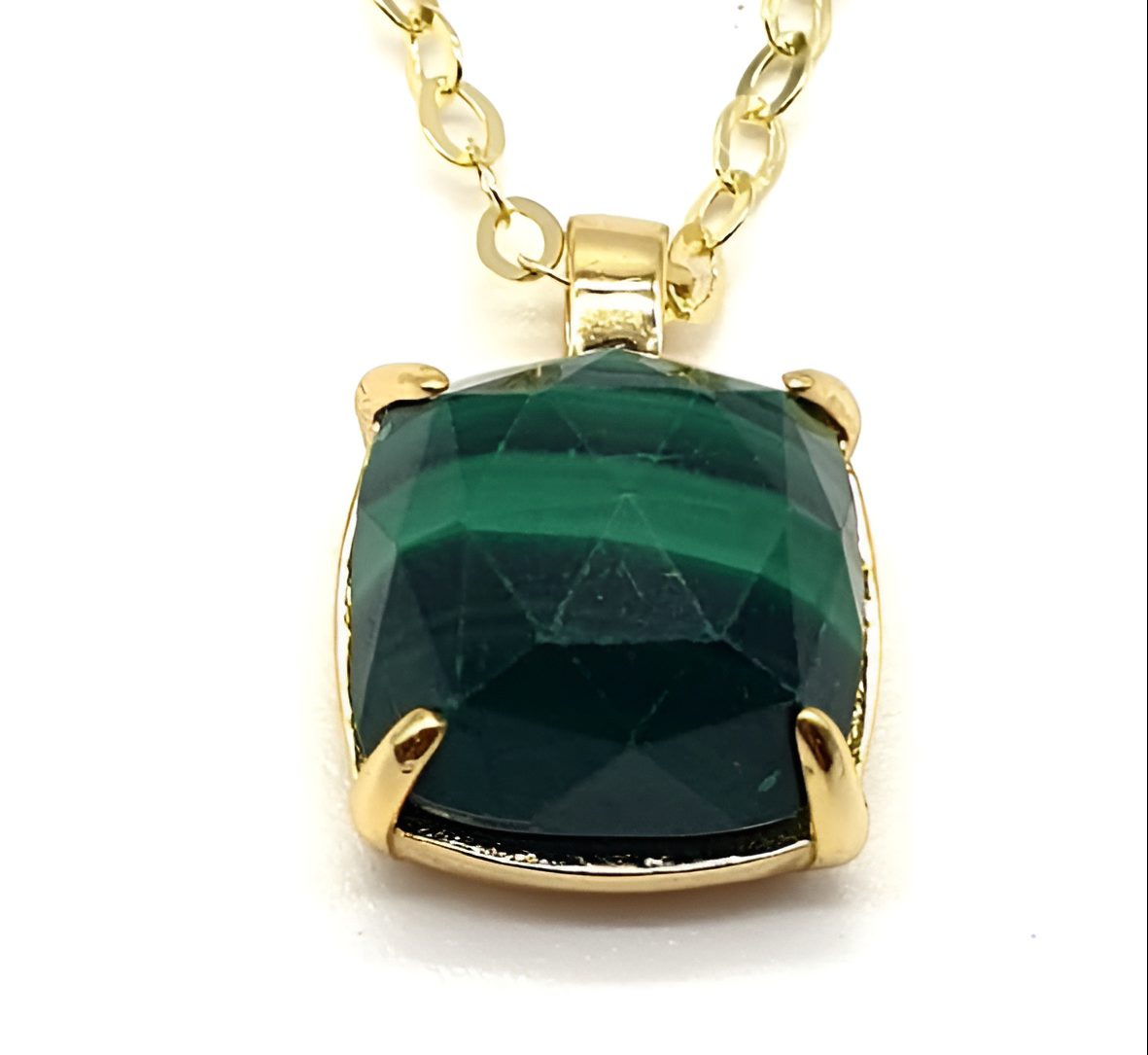 Collier Argent Plaqué Or et Malachite Carrée de 10x10mm