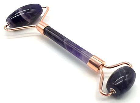 Ce dispositif innovant combine deux rouleaux de massage en Améthyste, une pierre précieuse connue pour ses propriétés calmantes et équilibrantes. Les rouleaux glissent en douceur sur la peau, offrant une sensation apaisante tout en stimulant la circulation sanguine, réduisant les tensions musculaires et favorisant un teint éclatant.
